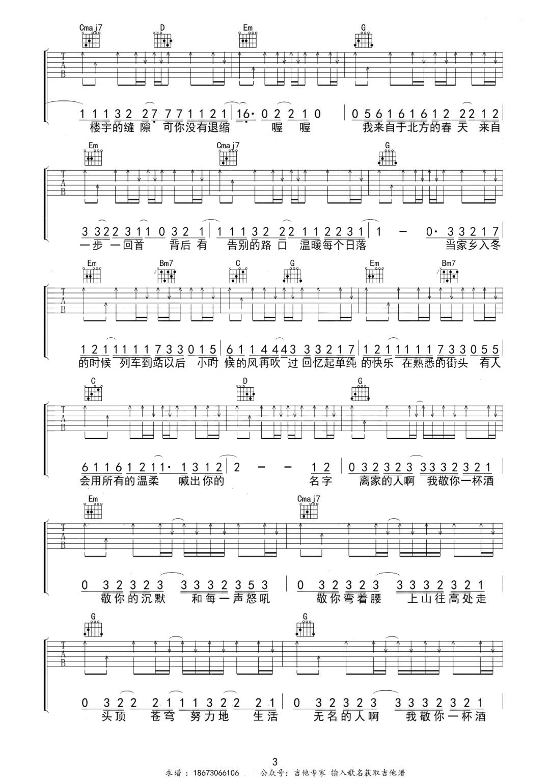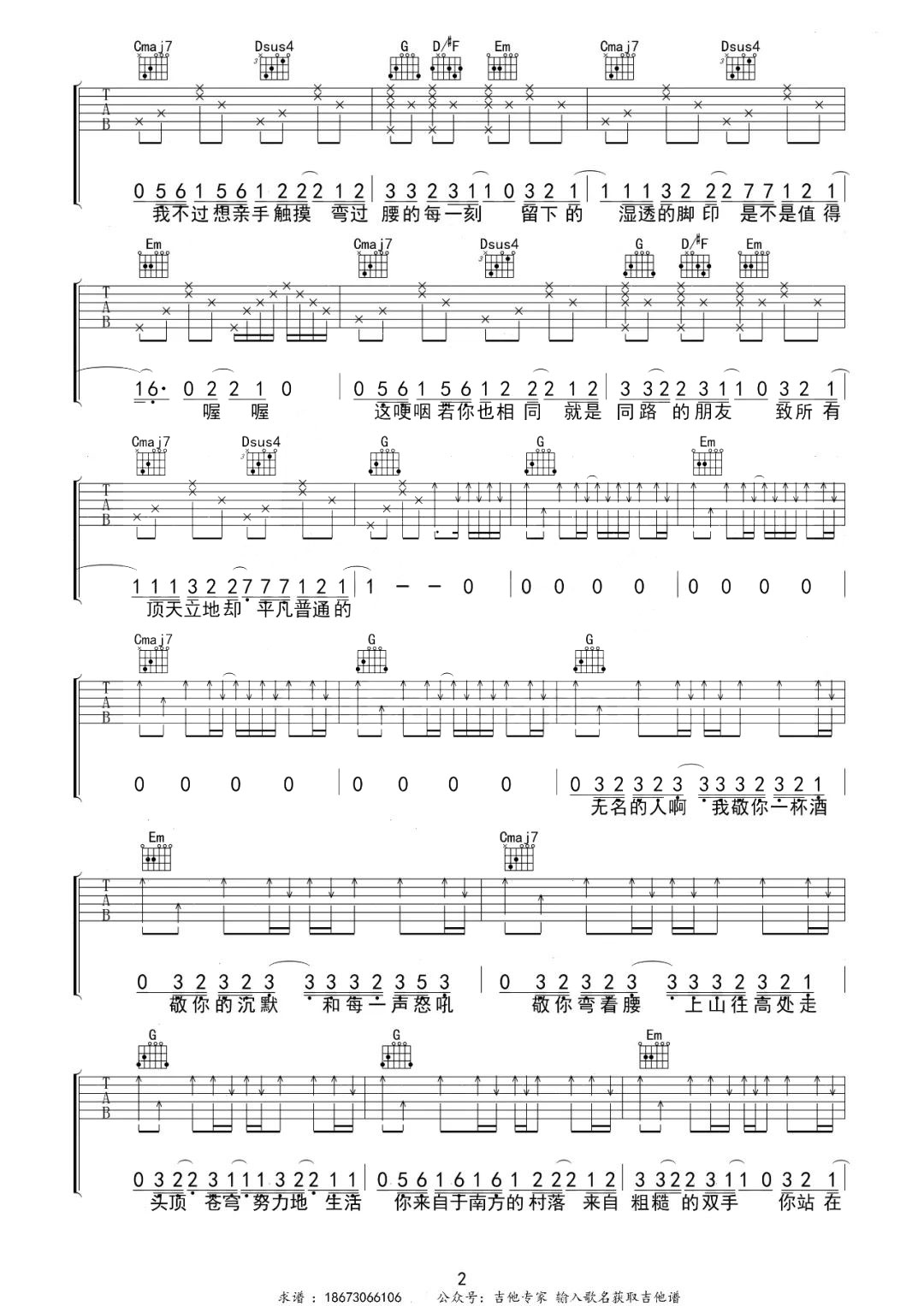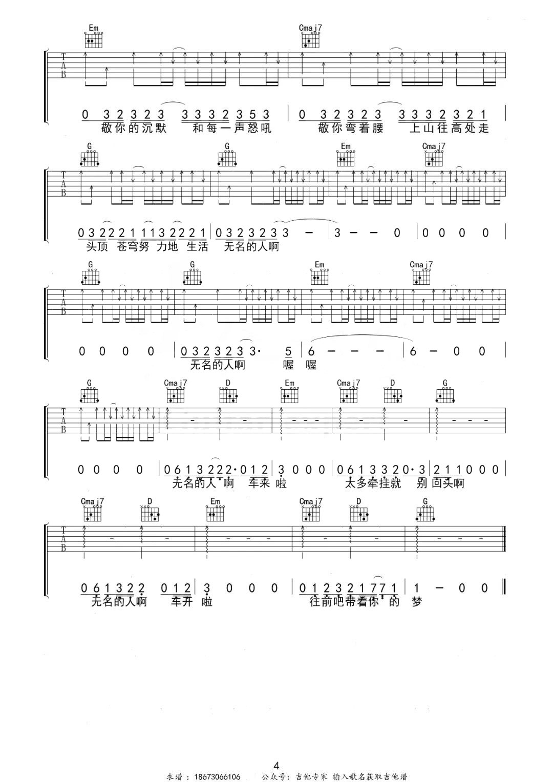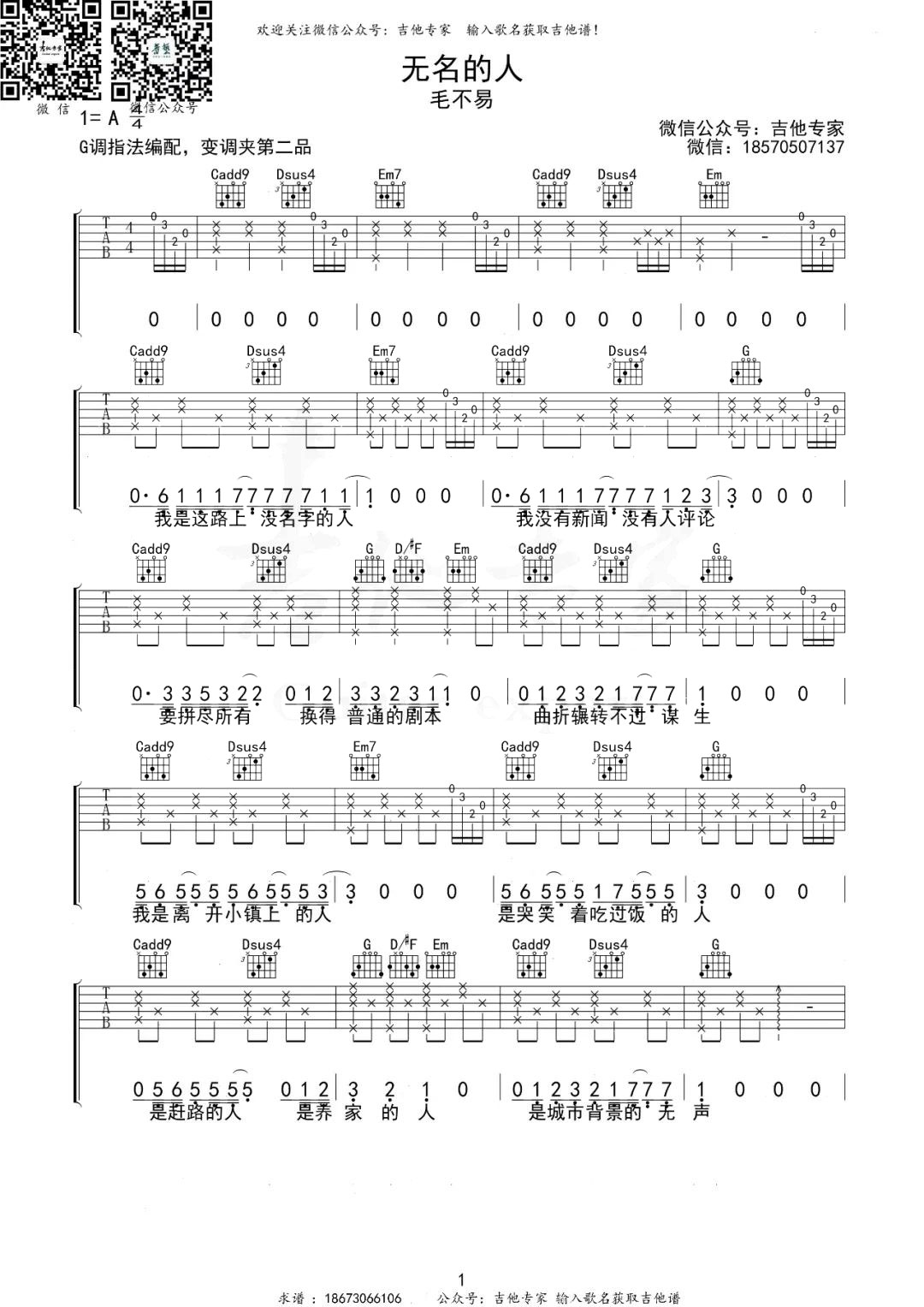 毛不易《无名的人》吉他谱 G调指法弹唱乐谱