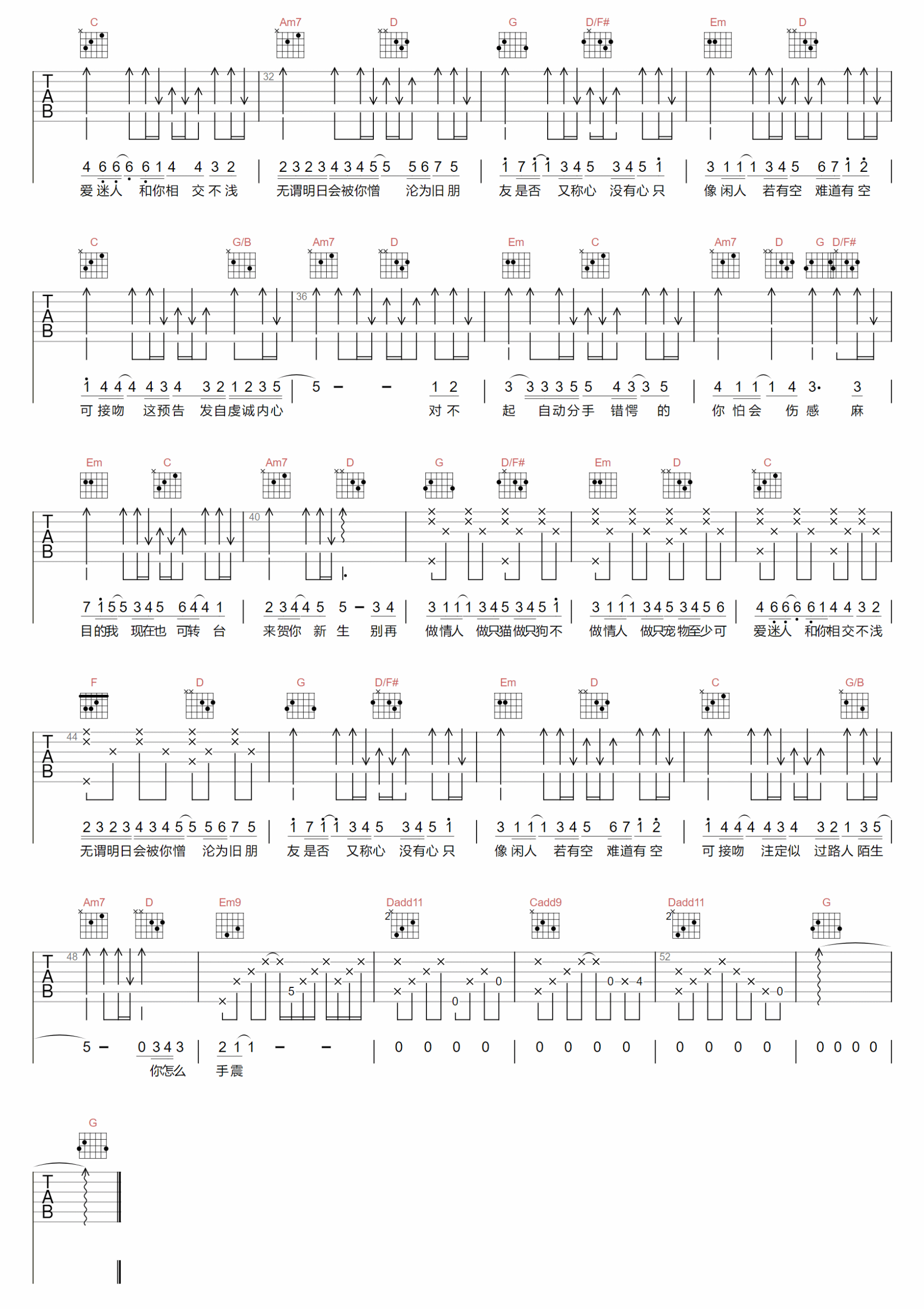古巨基《爱与诚》吉他谱 G调弹唱谱