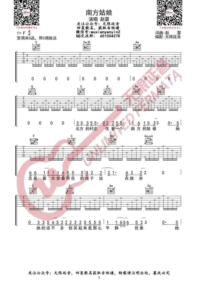0 thoughts on “赵雷《南方姑娘》吉他谱 C调弹唱谱”