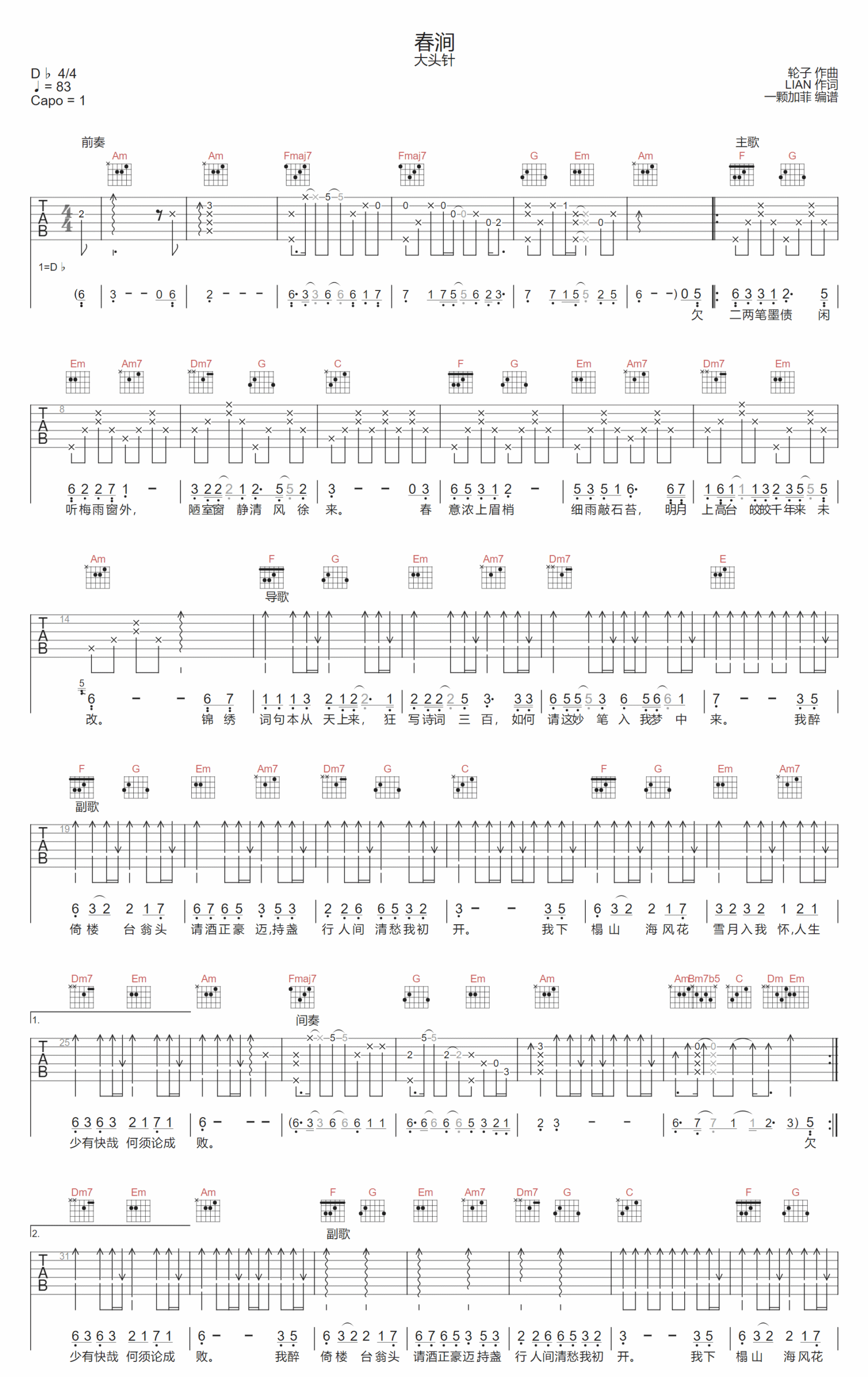 0 thoughts on “大头针《春涧》吉他谱 C调弹唱谱”