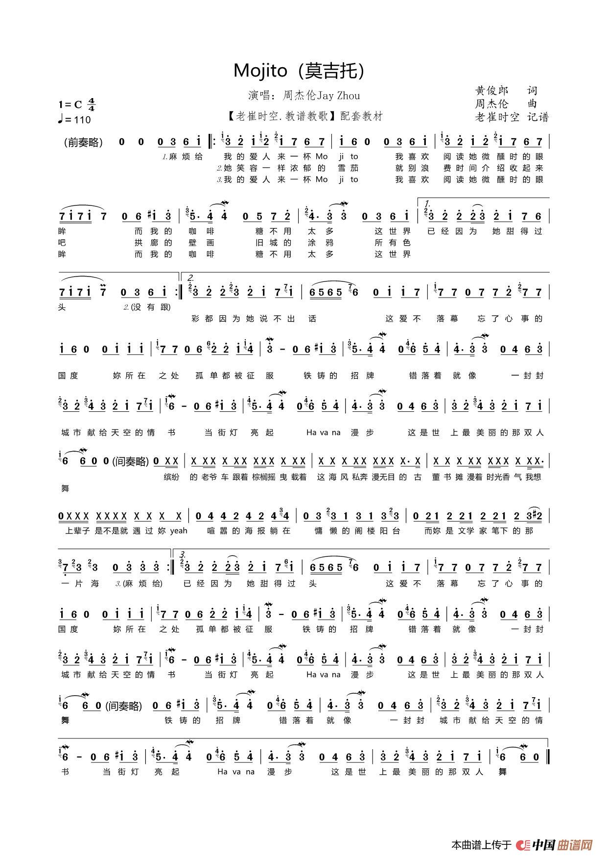 周杰伦《mojito》简谱(2021央视春晚歌曲)