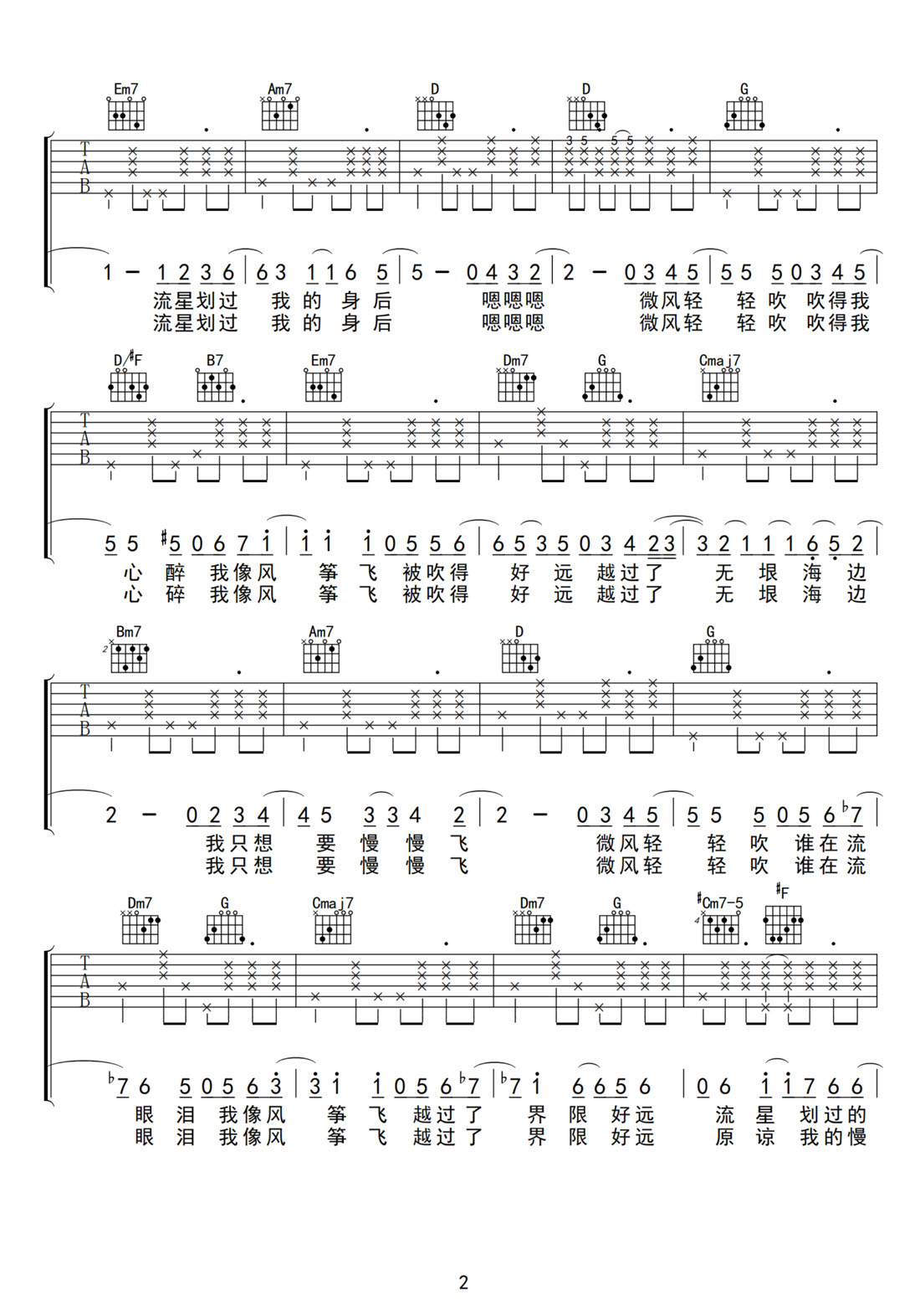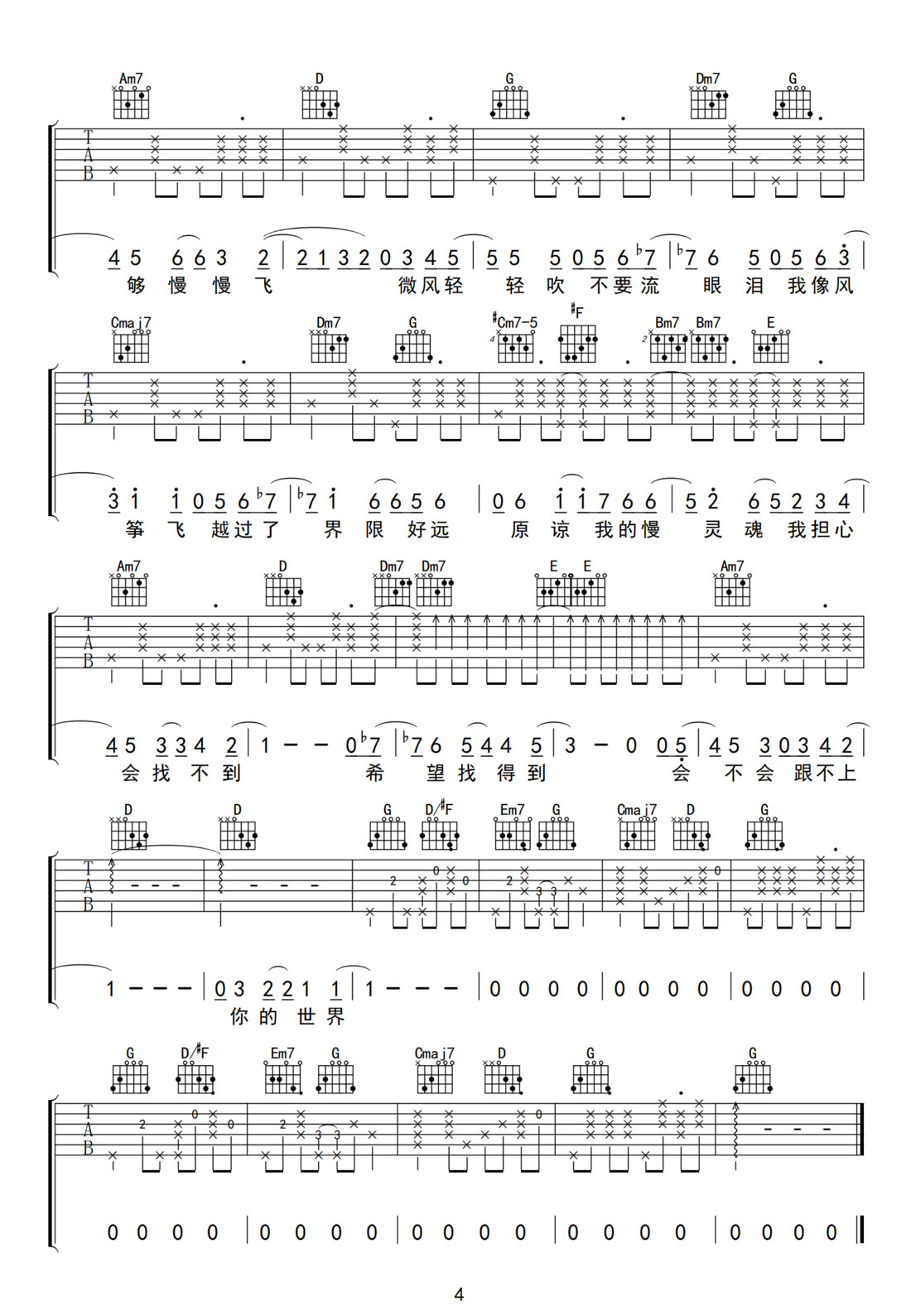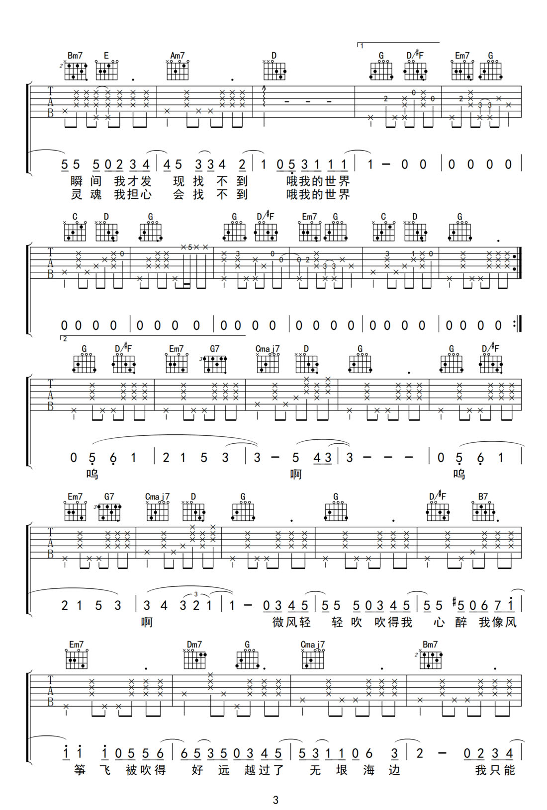 歌曲原调为G调,此版本的曲谱来源于@网络转载,为4/4拍的节奏,按G调指法编配,共4张高清吉他谱,变调夹不夹为原歌曲的调式,演唱时可按个人音域选择合适的变调夹位置。
