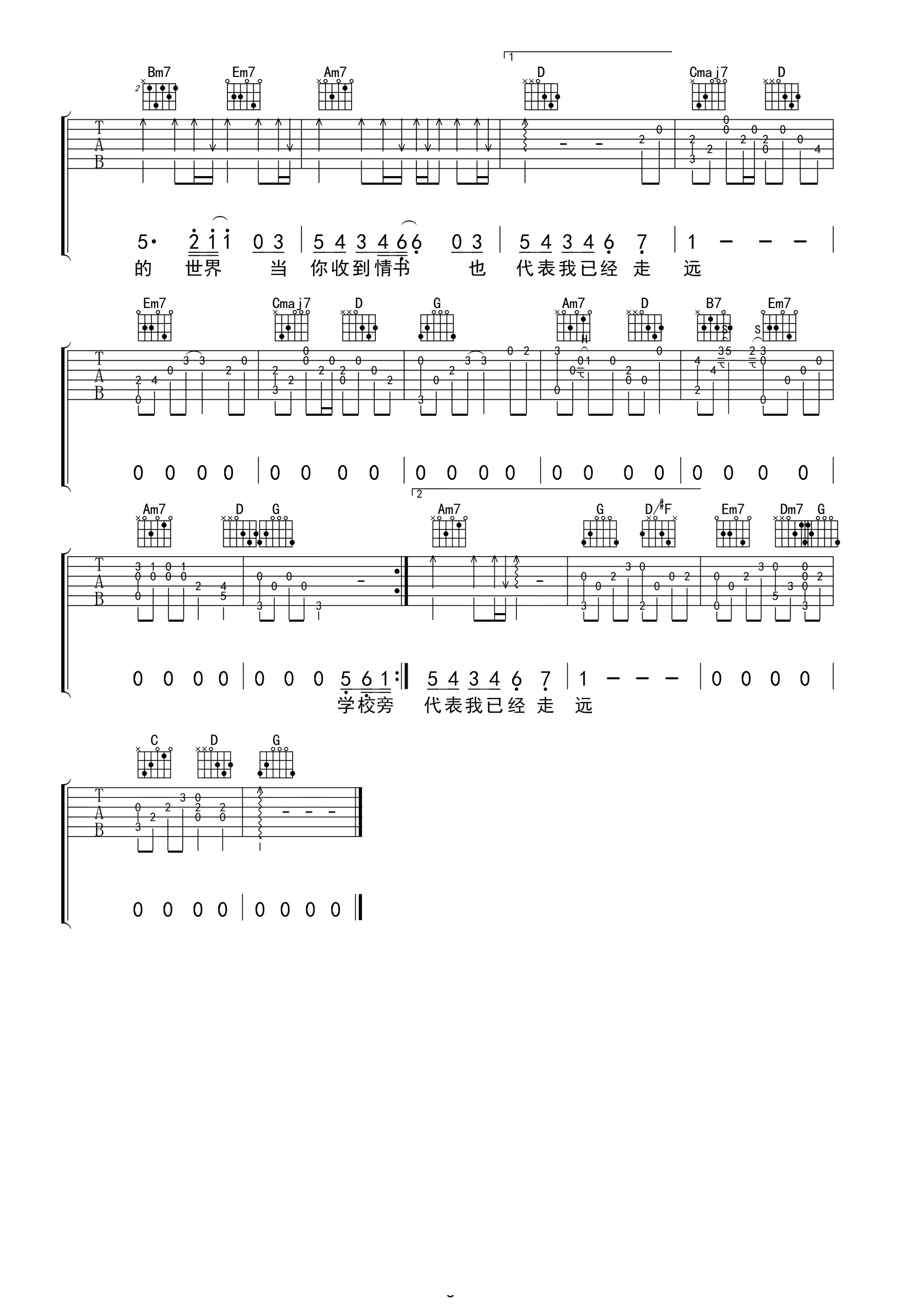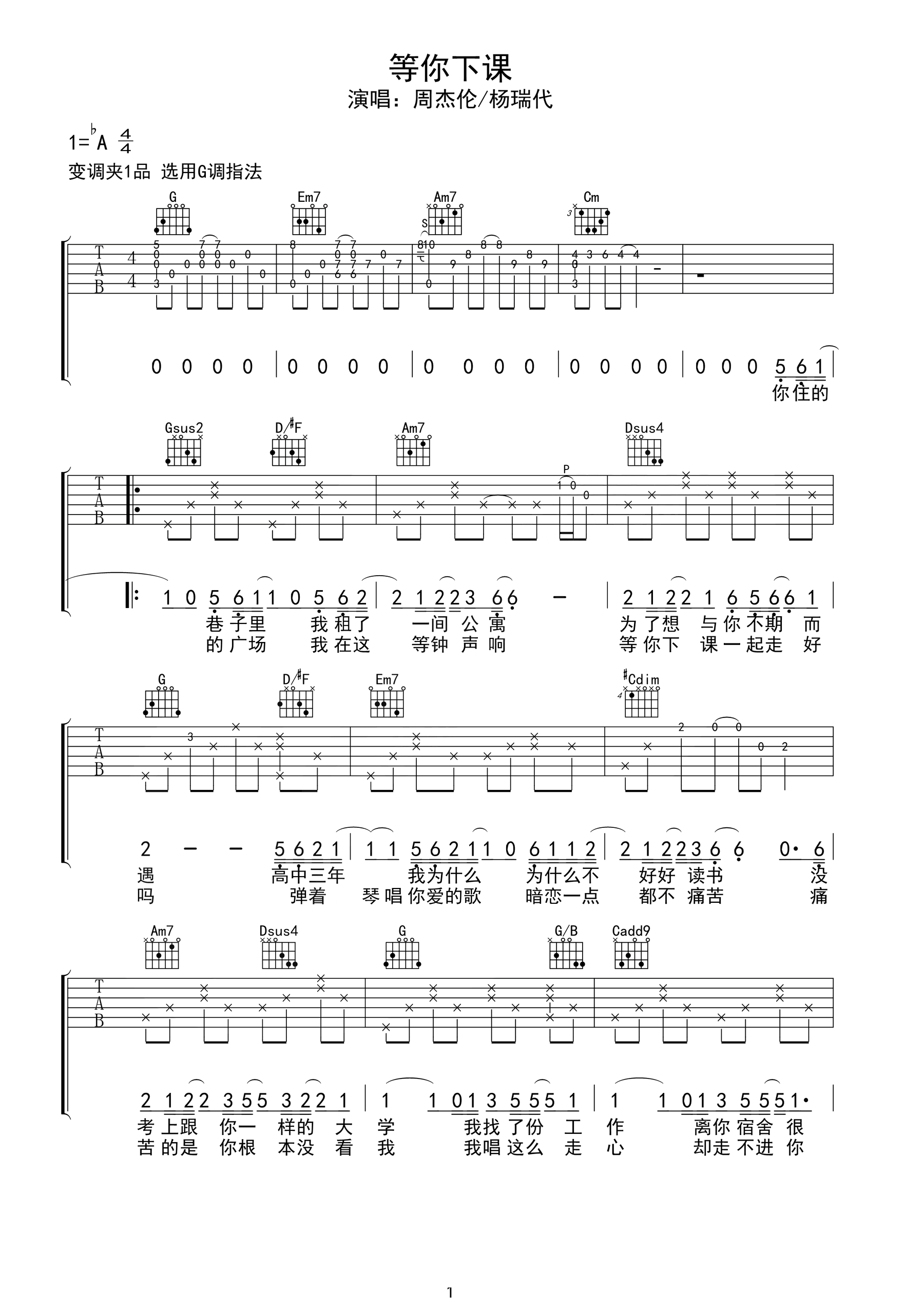 周杰伦《等你下课》吉他谱 G调指法弹唱曲谱