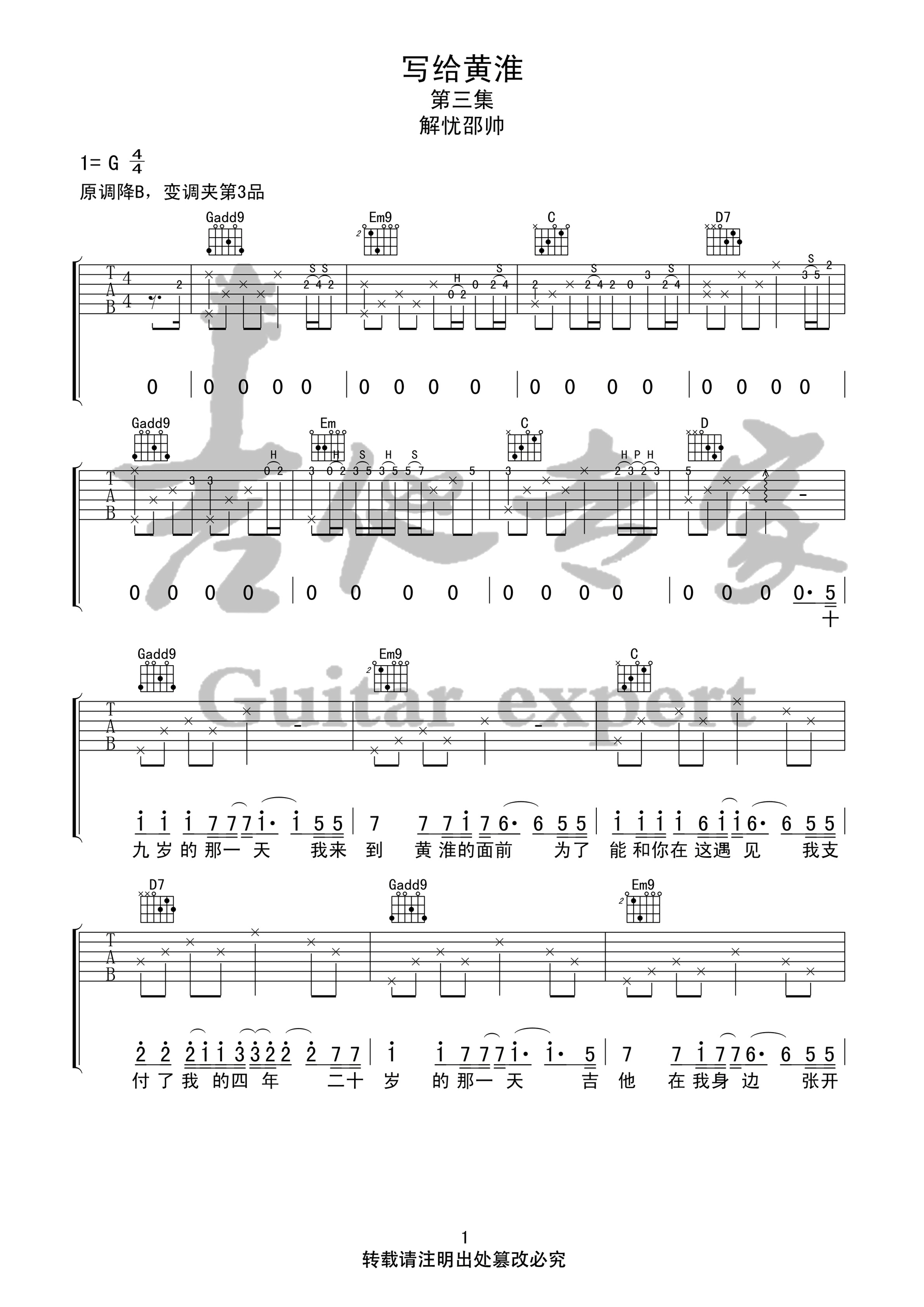 解忧邵帅《写给黄淮》吉他谱 G调弹唱谱