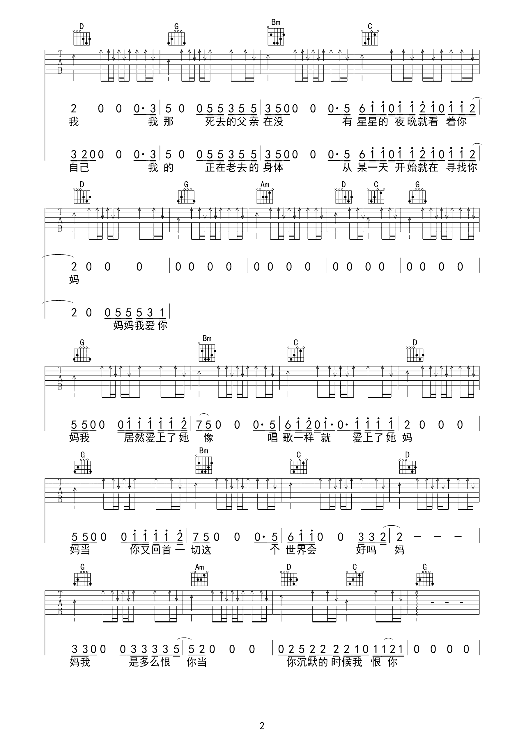 歌曲原调为G调,此版本的曲谱来源于@小琪琴社,为4/4拍的节奏,按G调指法编配,共2张高清吉他谱,变调夹不夹为原歌曲的调式,演唱时可按个人音域选择合适的变调夹位置。