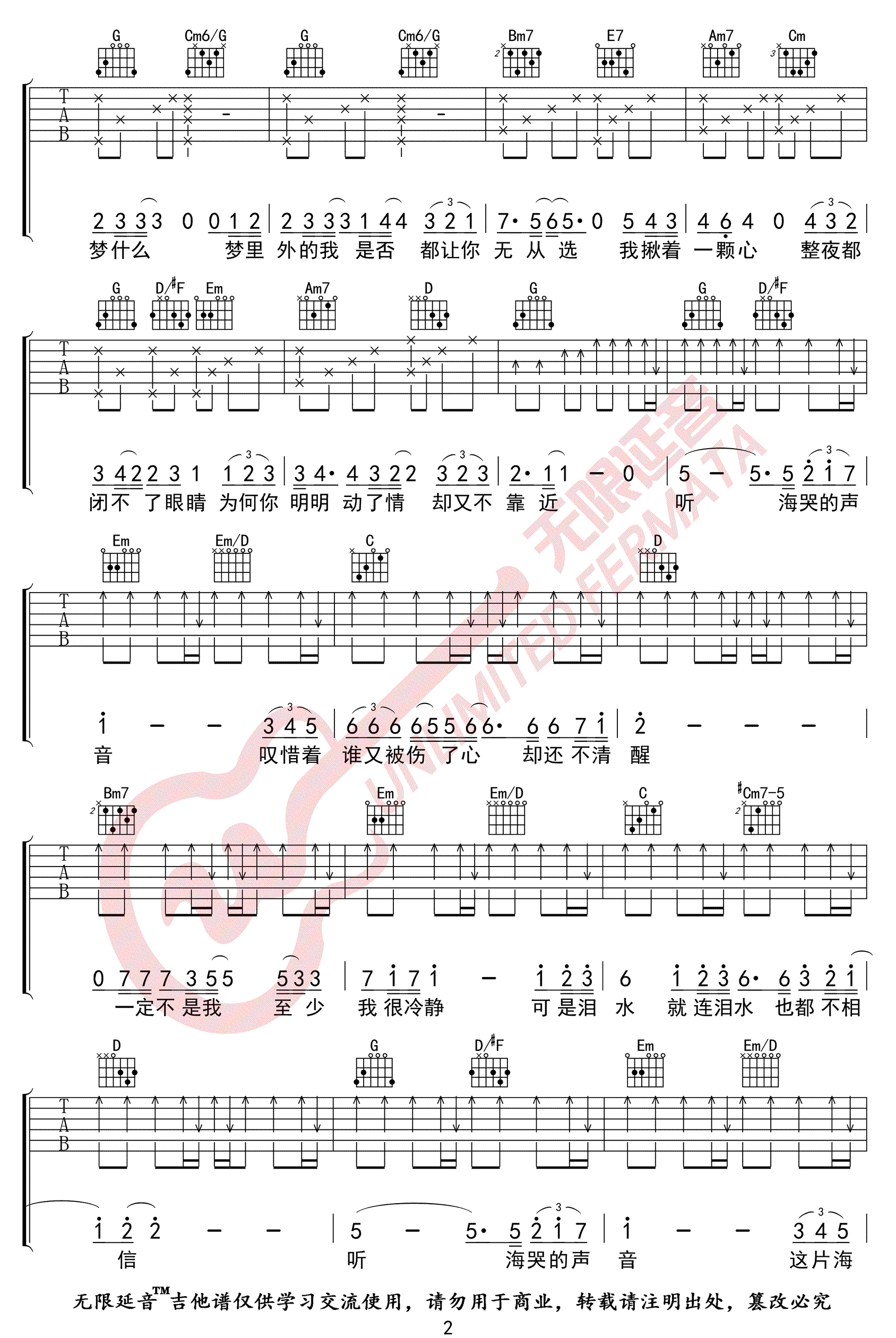 歌曲原调为降B调,此版本的曲谱来源于@无限延音,为4/4拍的节奏,按G调指法编配,共3张高清吉他谱,变调夹3品为原歌曲的调式,演唱时可按个人音域选择合适的变调夹位置。
