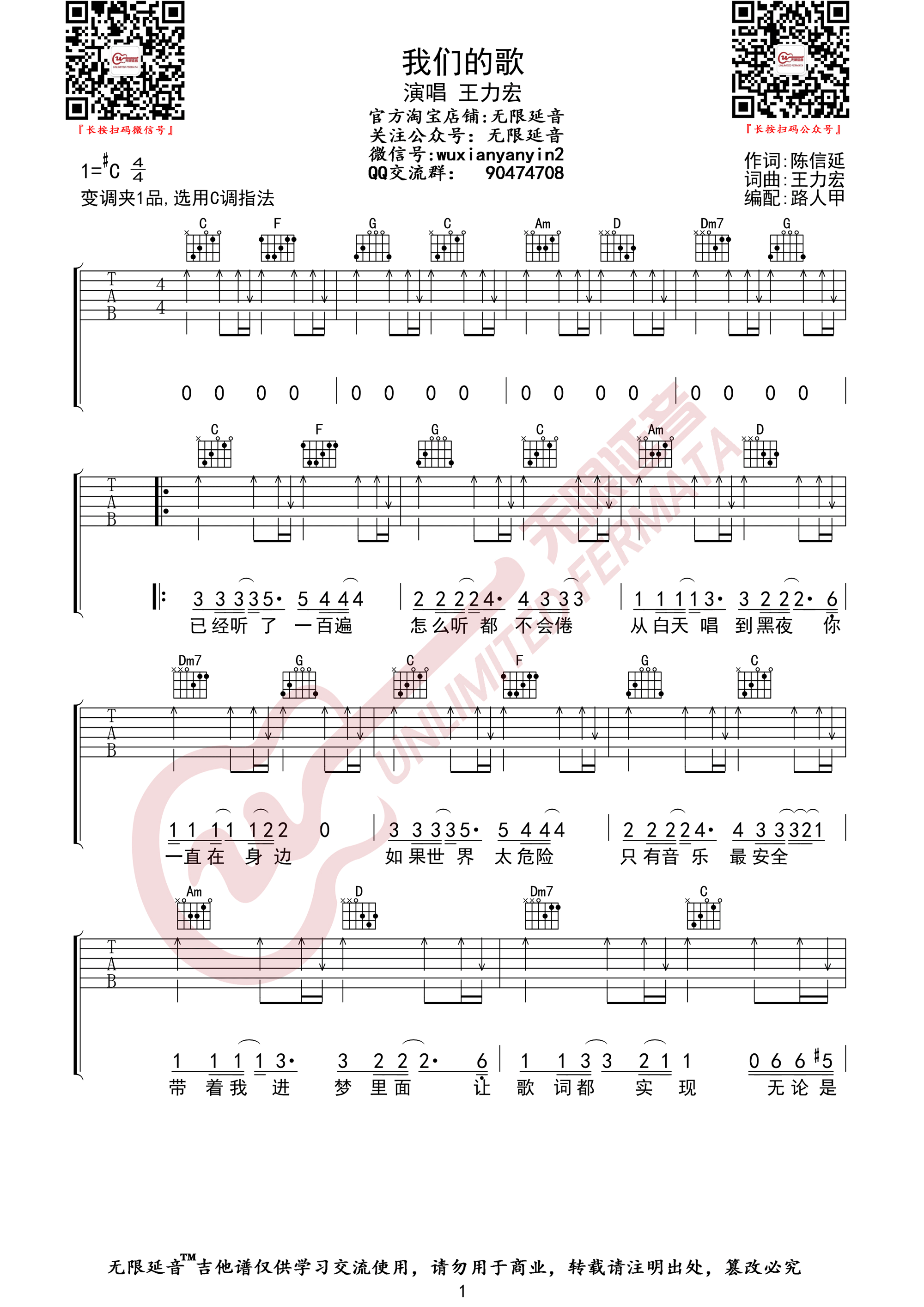 王力宏《我们的歌》吉他谱 C调弹唱曲谱