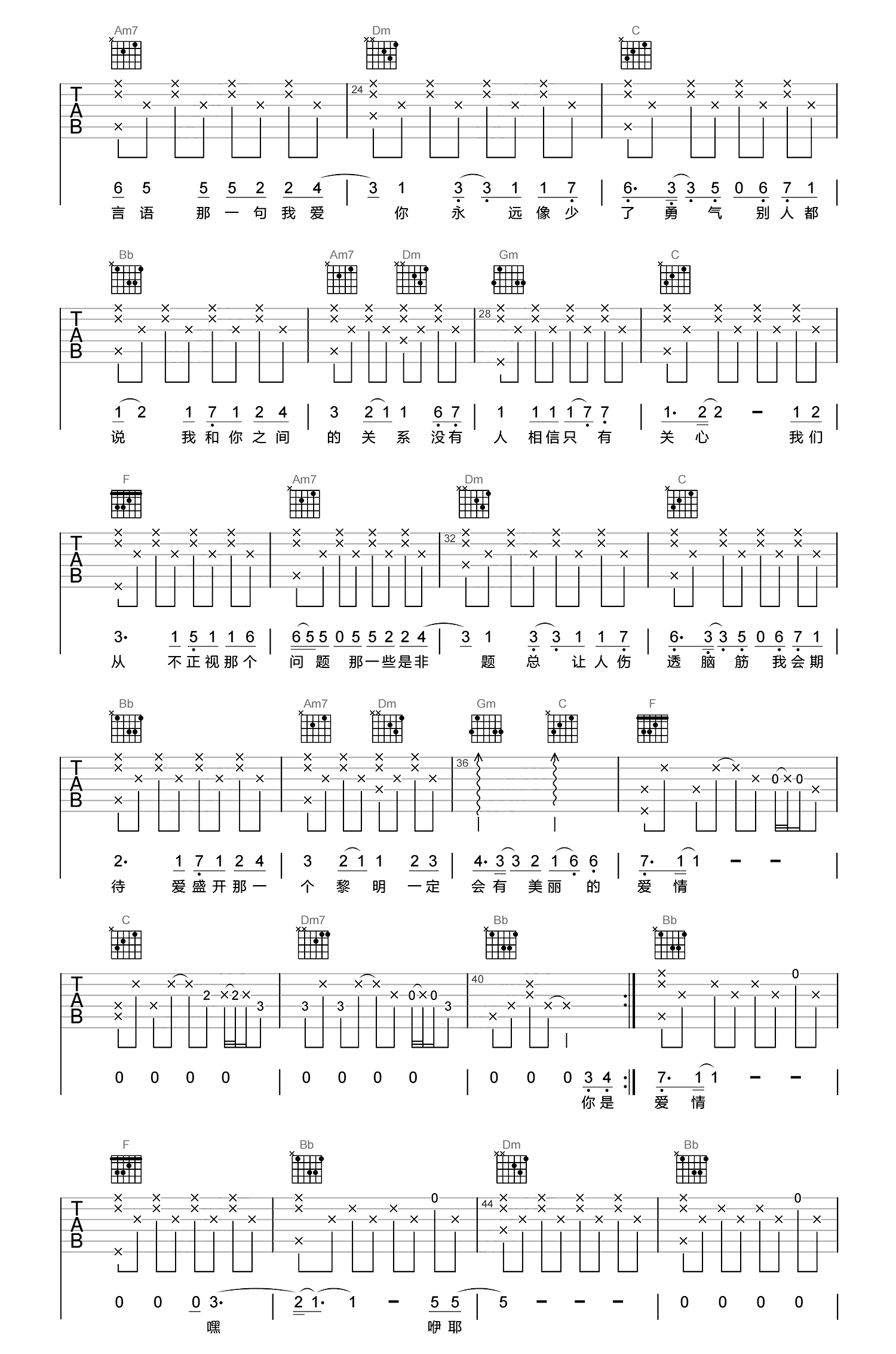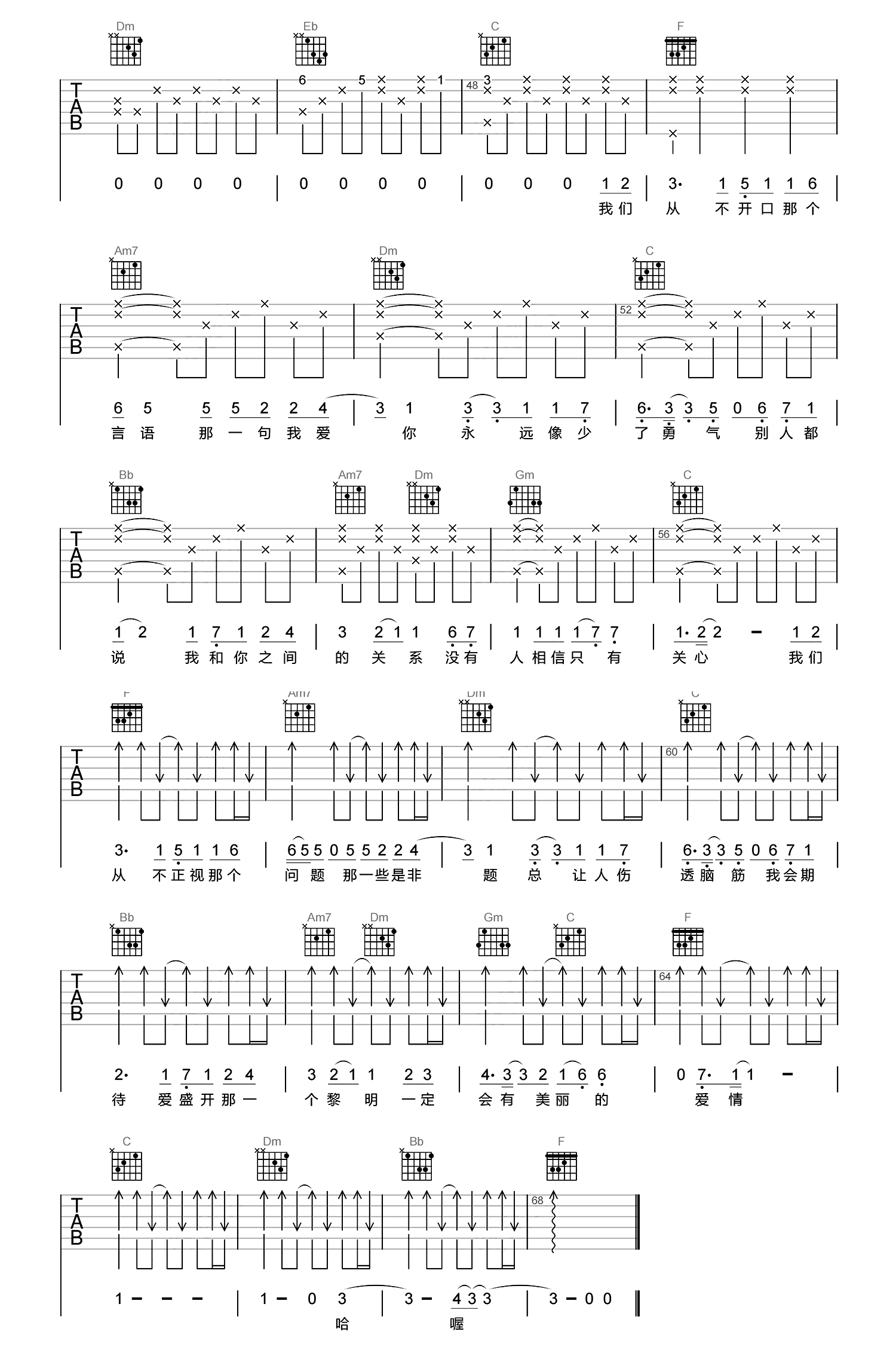 孙燕姿《开始懂了》吉他谱 C调指法扫弦弹唱曲谱:下一篇»
