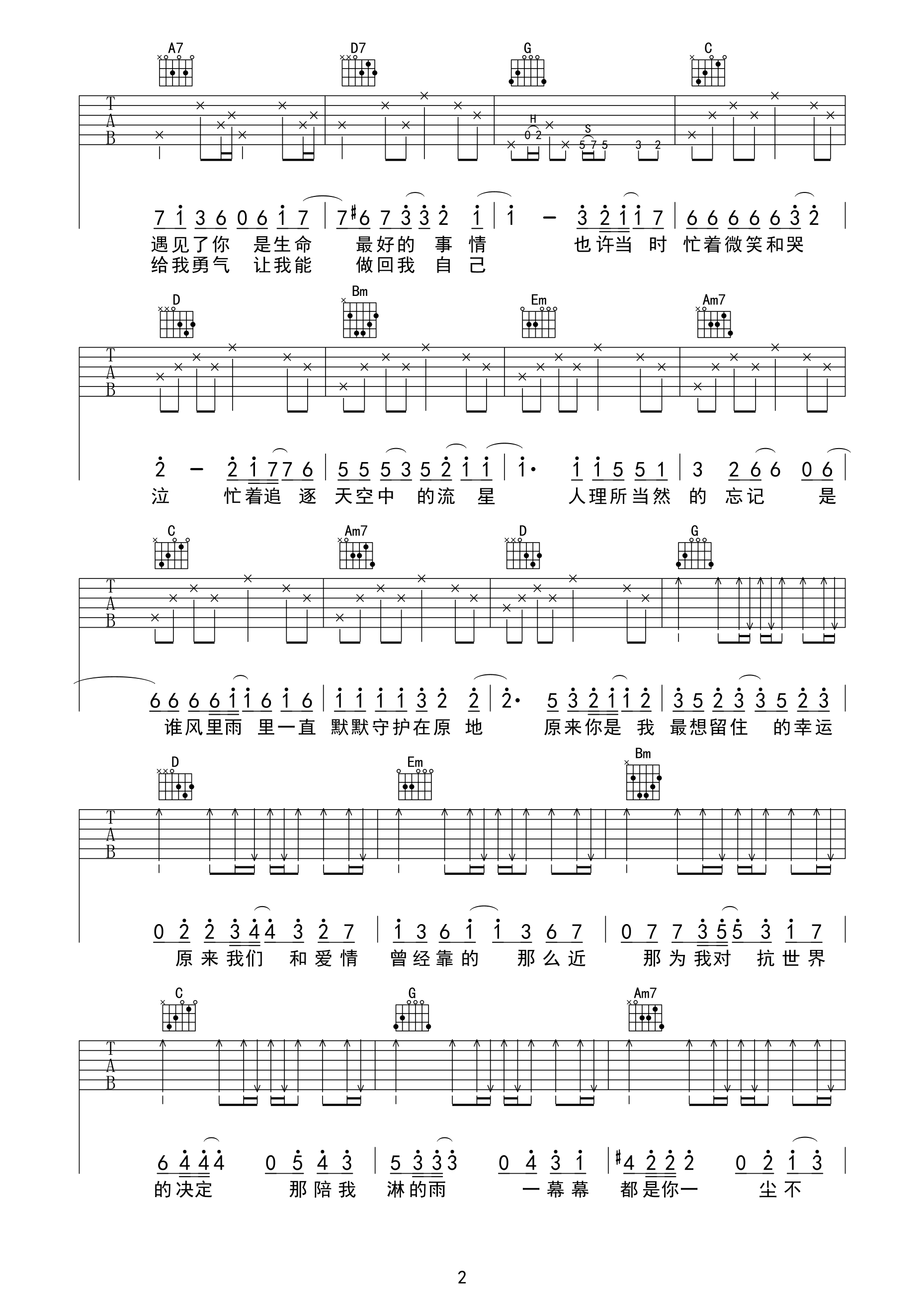 田馥甄《小幸运》吉他谱 G调弹唱谱 六线谱乐谱