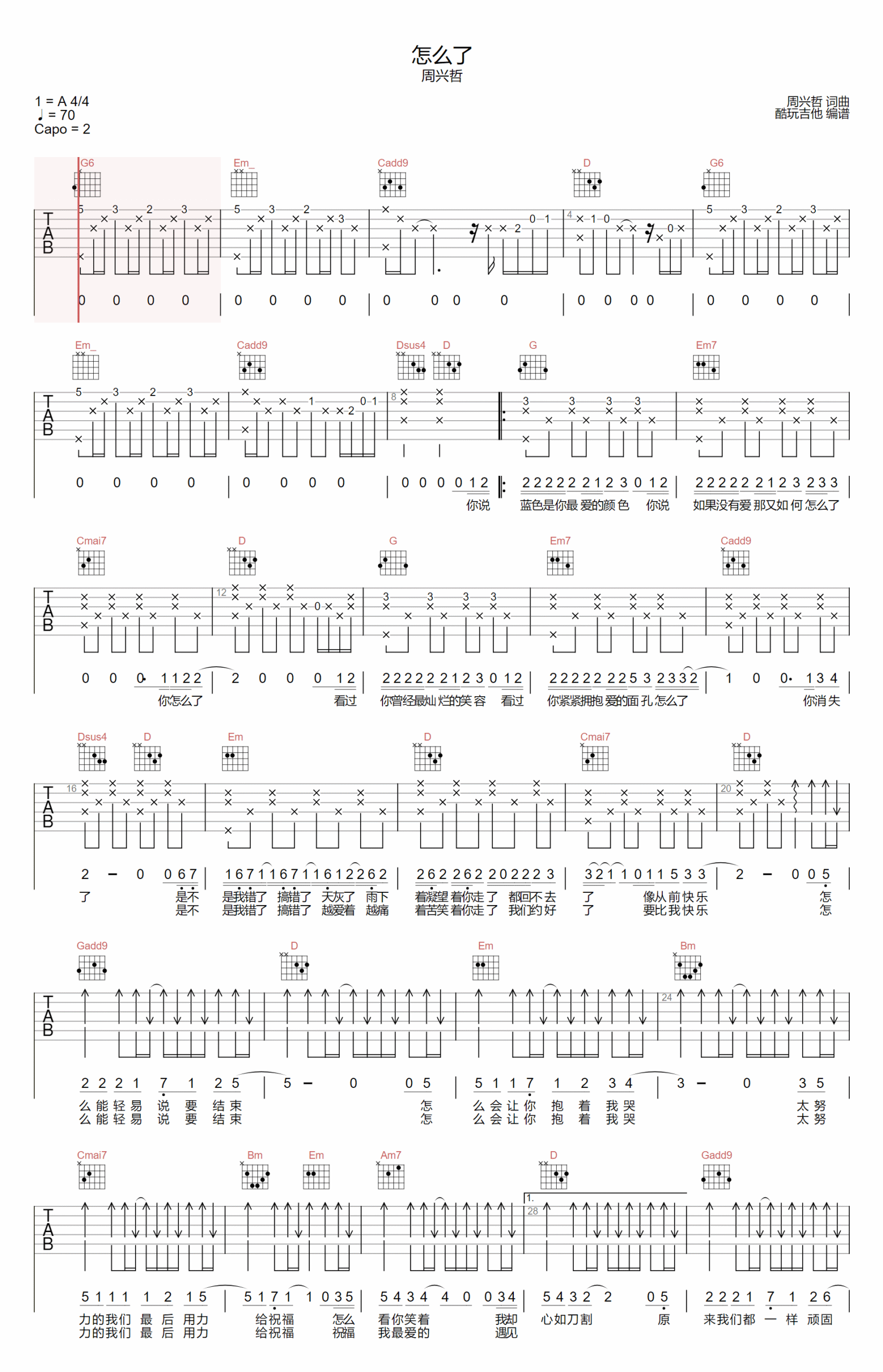 0 thoughts on “周兴哲《怎么了》吉他谱 G调弹唱谱”